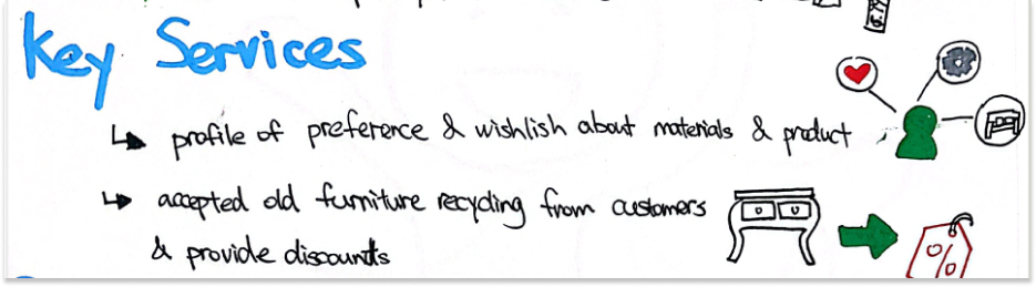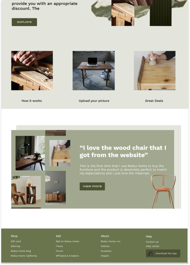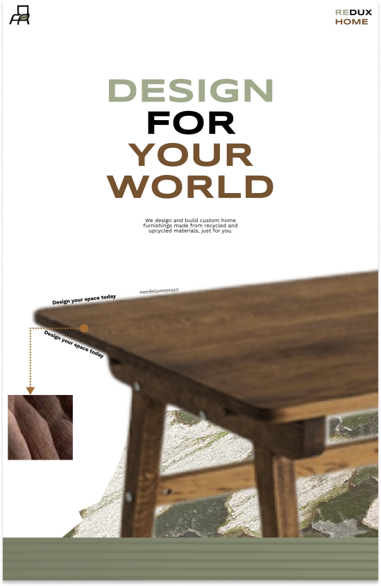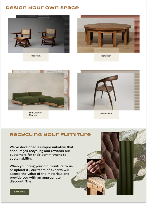 Navigation, design your Space, wishlist, up-cycle old furniture